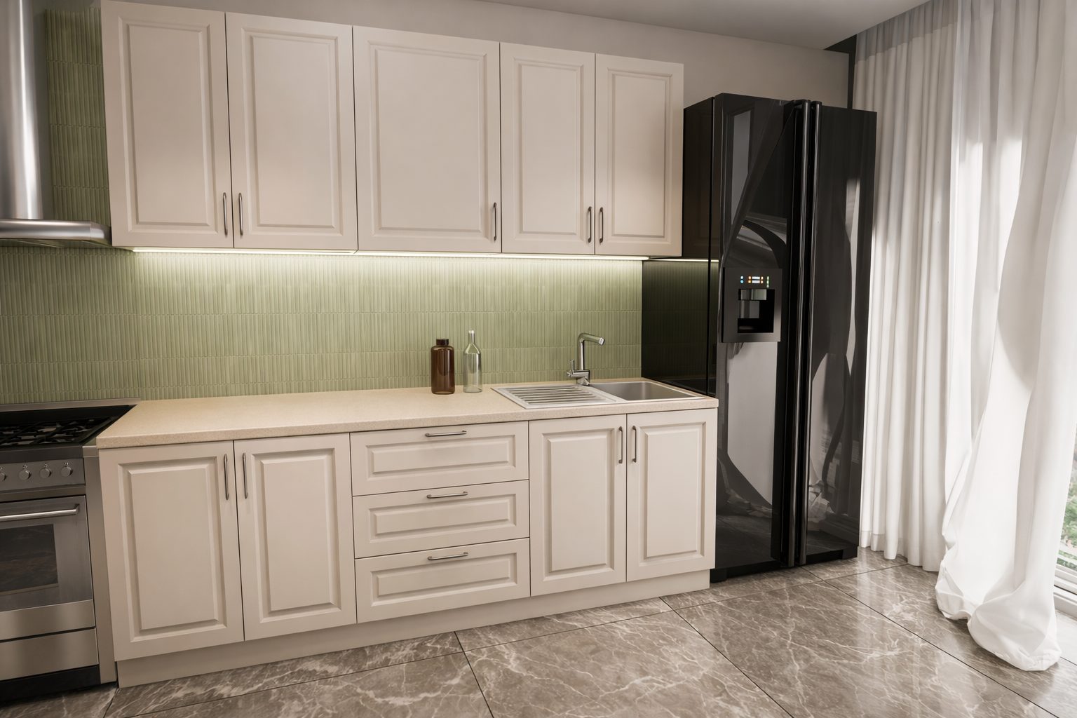 Fronturile din MDF vopsit oferă un finisaj uniform și elegant,