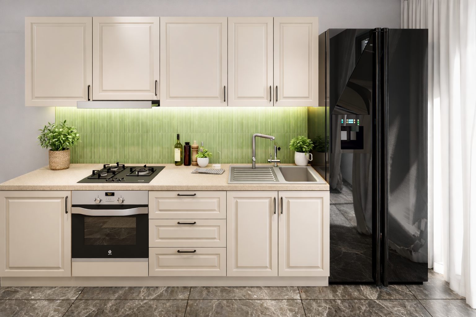 Această bucătărie este realizată pentru un aspect rafinat și o utilizare practică de zi cu zi.