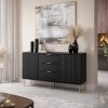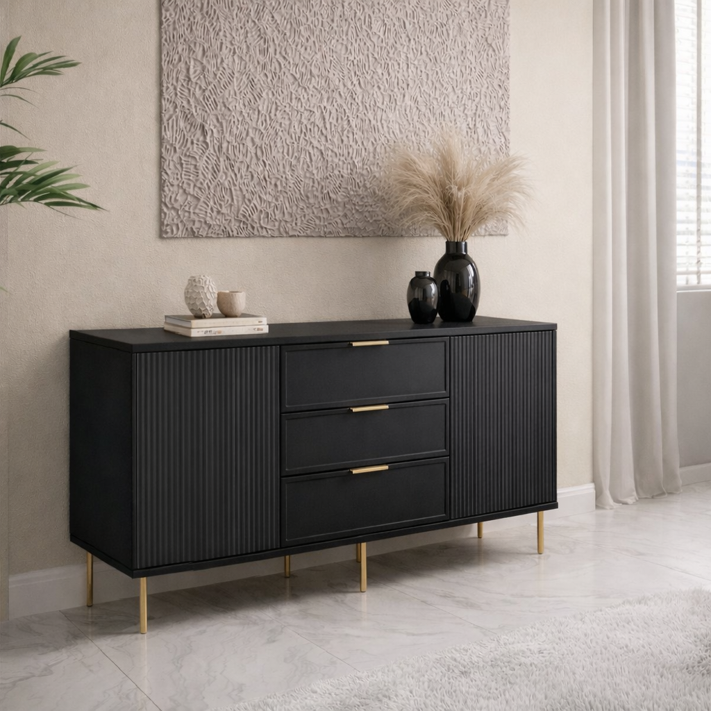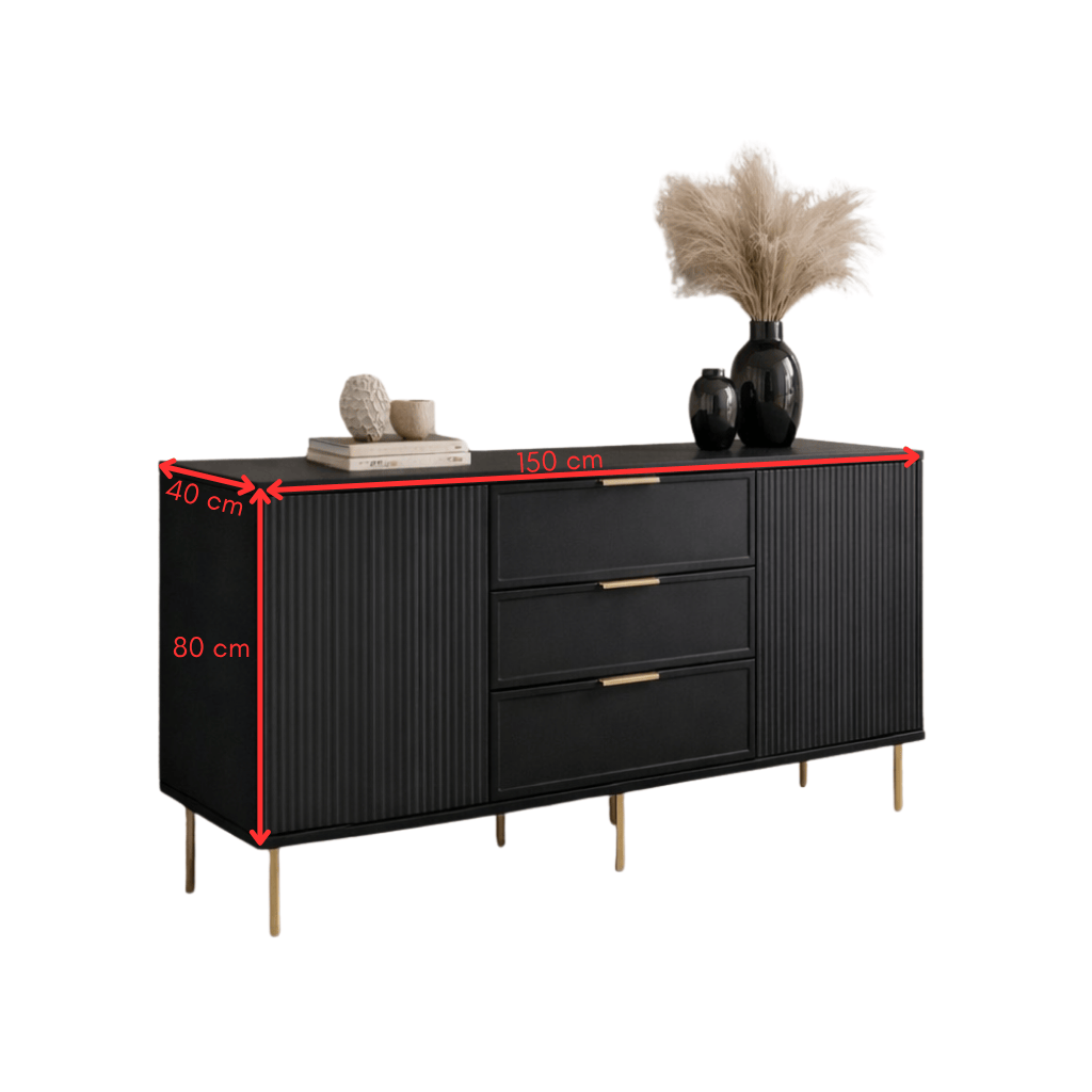 Negrul mat se retrage discret în fundal și lasă restul camerei să respire. Comoda Soft cu 3 sertare și 2 uși oferă destul spațiu pentru tot ce vrei organizat, fără să aglomereze vizual.