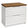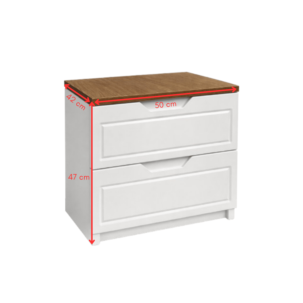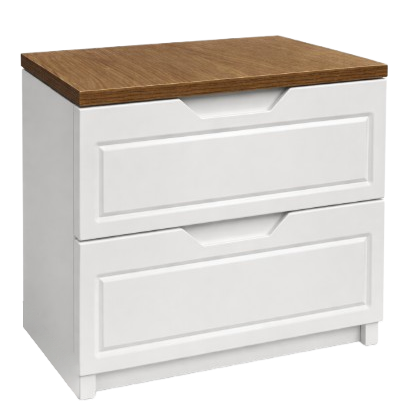 Carcasa este realizată din MDF de 18 mm, asigurând stabilitate și durabilitate în utilizare zilnică. Fronturile sertarelor sunt din MDF vopsit, cu finisaj uniform și plăcut la atingere, ușor de întreținut. Blatul superior din MDF furniruit adaugă un accent natural și rafinat, evidențiind textura lemnului.