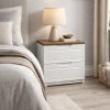 Noptiera dispune de sertare spațioase, ideale pentru depozitarea obiectelor esențiale de lângă pat, păstrând în același timp un aspect ordonat și aerisit.