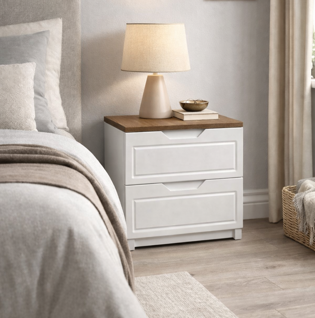 Noptiera NATURA este concepută pentru dormitoare elegante, în care materialele naturale și liniile curate sunt esențiale. Combinația dintre MDF-ul vopsit și blatul furniruit cu lemn natural oferă un aspect cald, echilibrat, potrivit atât interioarelor moderne, cât și celor contemporane.
